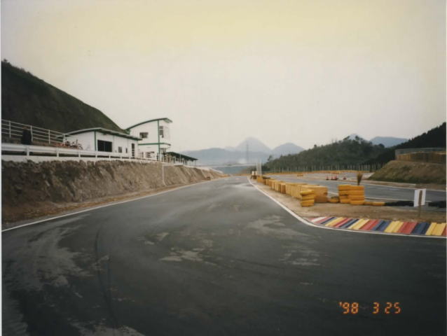 安心院 家族村の中にあり、山を切り開いて造成した模様。ピットとストレートに6mの段差がある。、第一コーナー側と最終コーナー側にコースも2段に別れて、高低差のある興味深いコースだ。