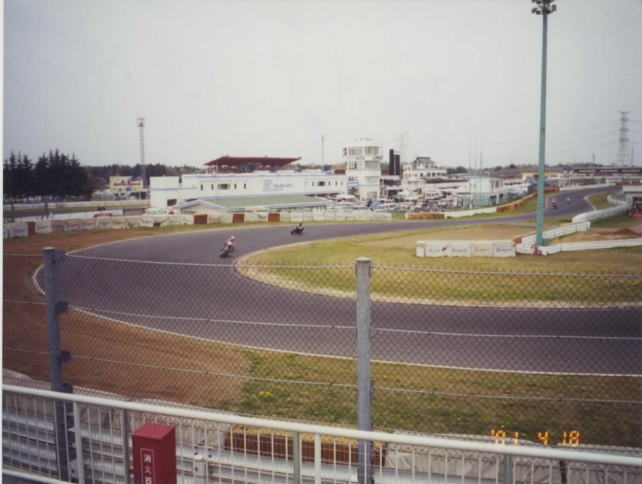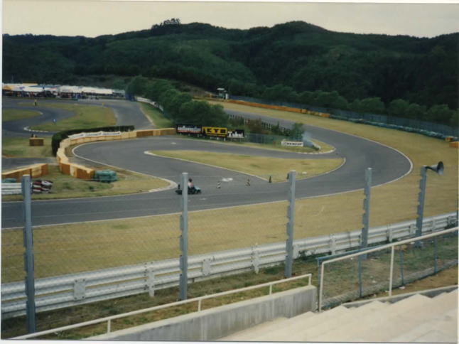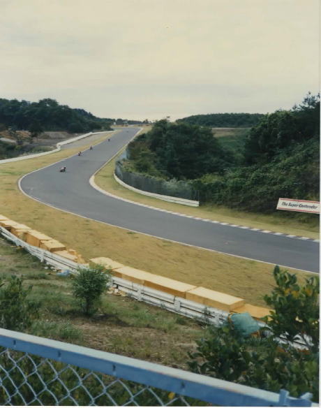 1986年菅生スポーツランド。現在の第一コーナーとはかなり変更されています。バイク走行終了直後の若者のさわやかな顔にすばらしさを感じました。DUNLOPアーチも今は最終コーナー側に設置になっています。3枚目 馬の背と呼ばれていたかなりの下りからのターンです。4枚目 最終コーナー前のシケインで、カートトラックも見えます。