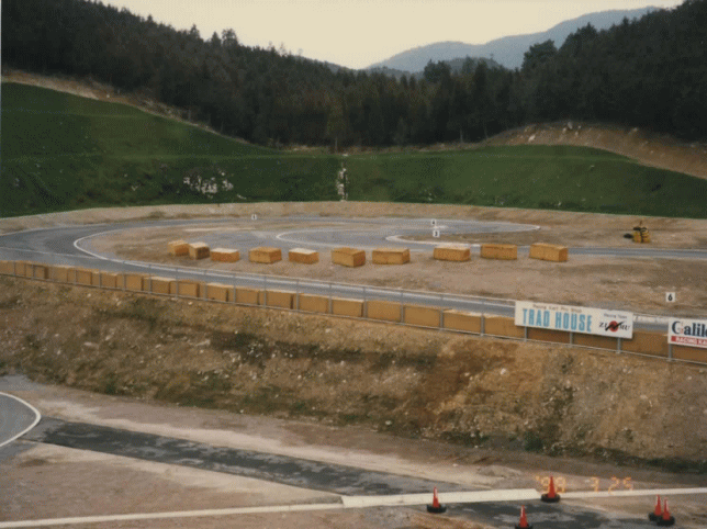 安心院 家族村の中にあり、山を切り開いて造成した模様。ピットとストレートに6mの段差がある。、第一コーナー側と最終コーナー側にコースも2段に別れて、高低差のある興味深いコースだ。